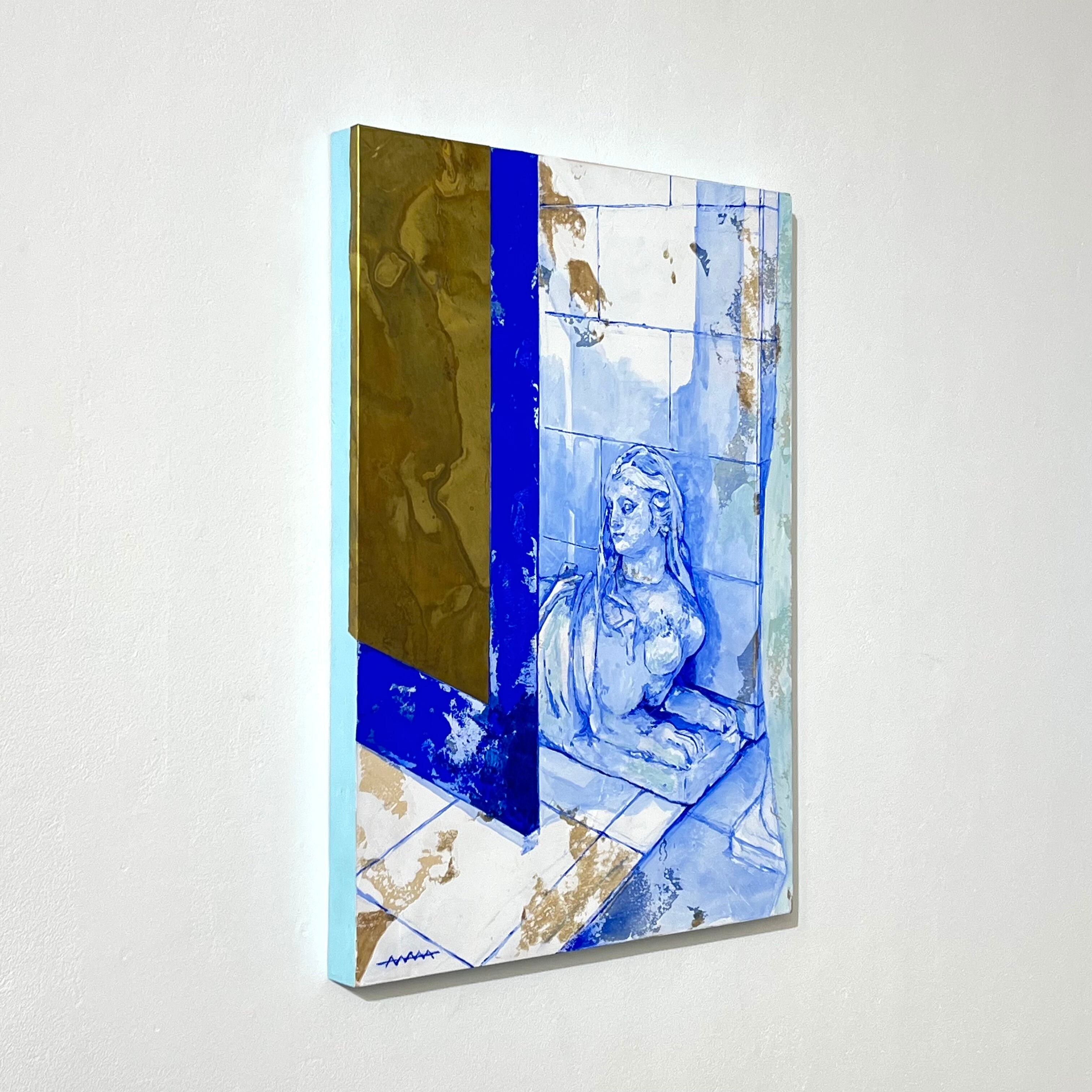 Acrylic, mineral pigments, lacquer paint, glitter, brass on wood panel