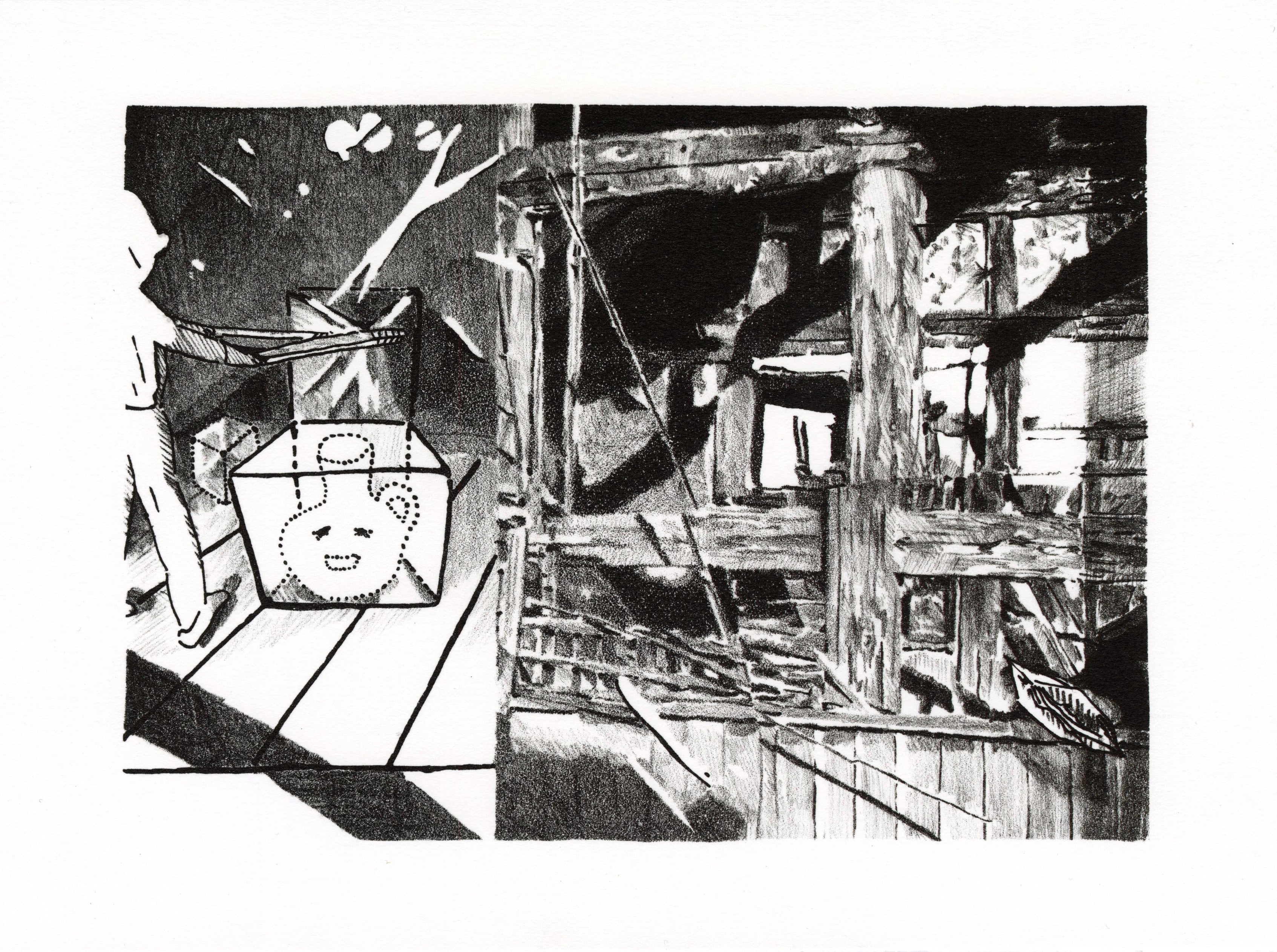 を見出している。日常的なものや関係のないものを版の表面上で断片的に組み合わせ、そ