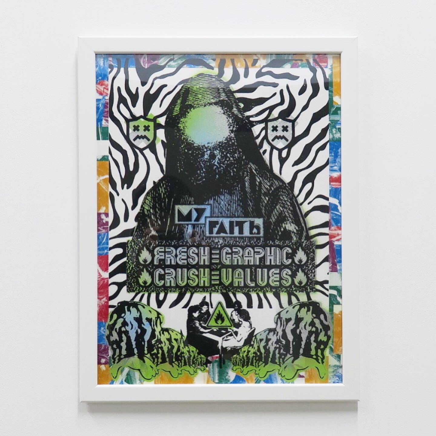 2019年 dbstr "MY FAITH"の際に制作されたシルクスクリーンポスター。 dbstr が、コラージュやスプレーペイントを施した紙にKAC(亀戸アートセンター)がdbstrのデザインをプリントした作品。プリントエディションはついていますが、一点ものの作品です。