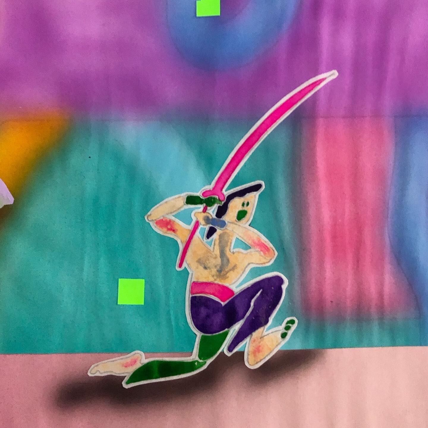 技法・材質 : コラージュ、紙にアクリルと水彩絵具