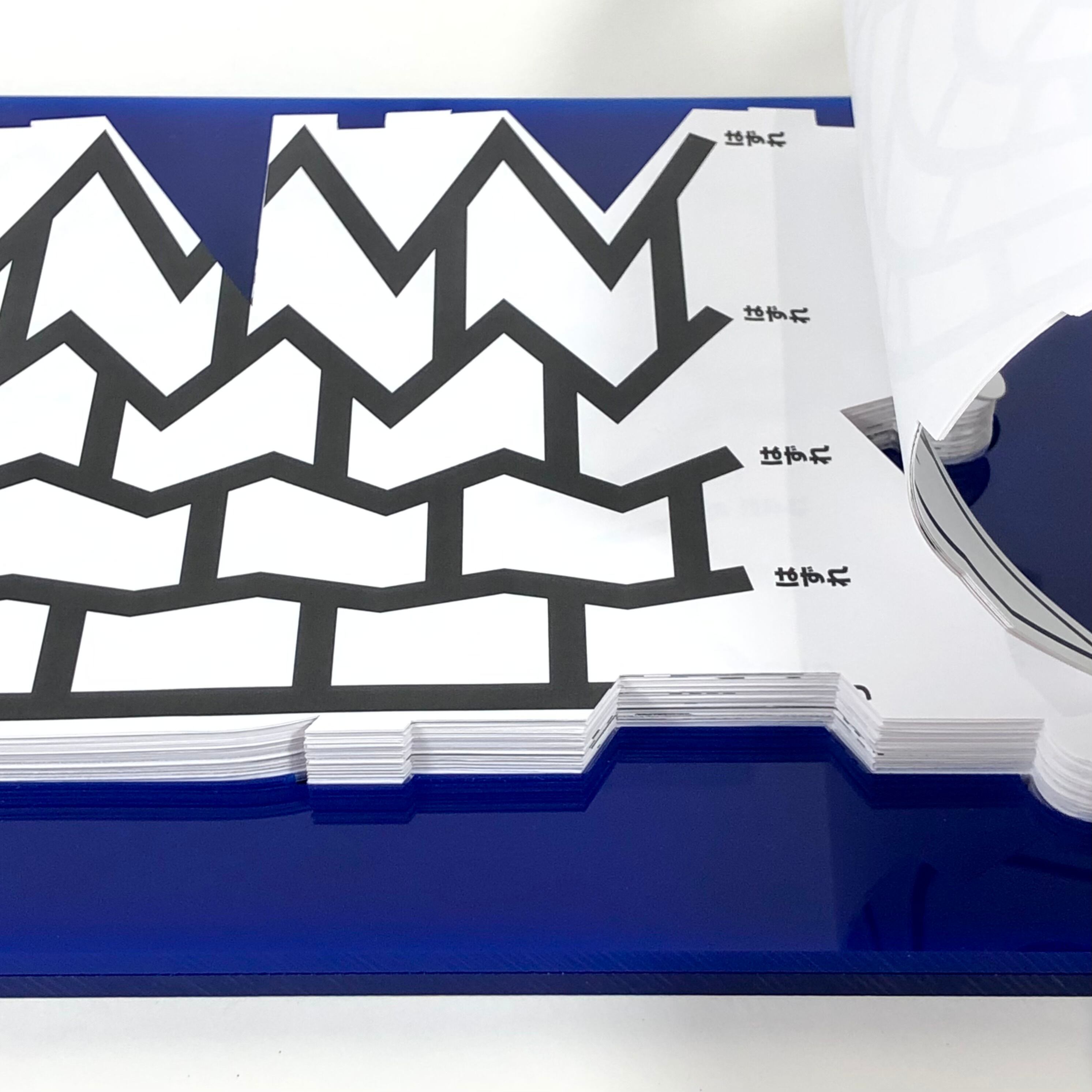 作品について : よシまるシンのいろんなあみだが100個入ったあみだ本『CONTEMPORARY AMIDA』改訂版をヌキ本が手作業でヌいて再び製本した作品です。